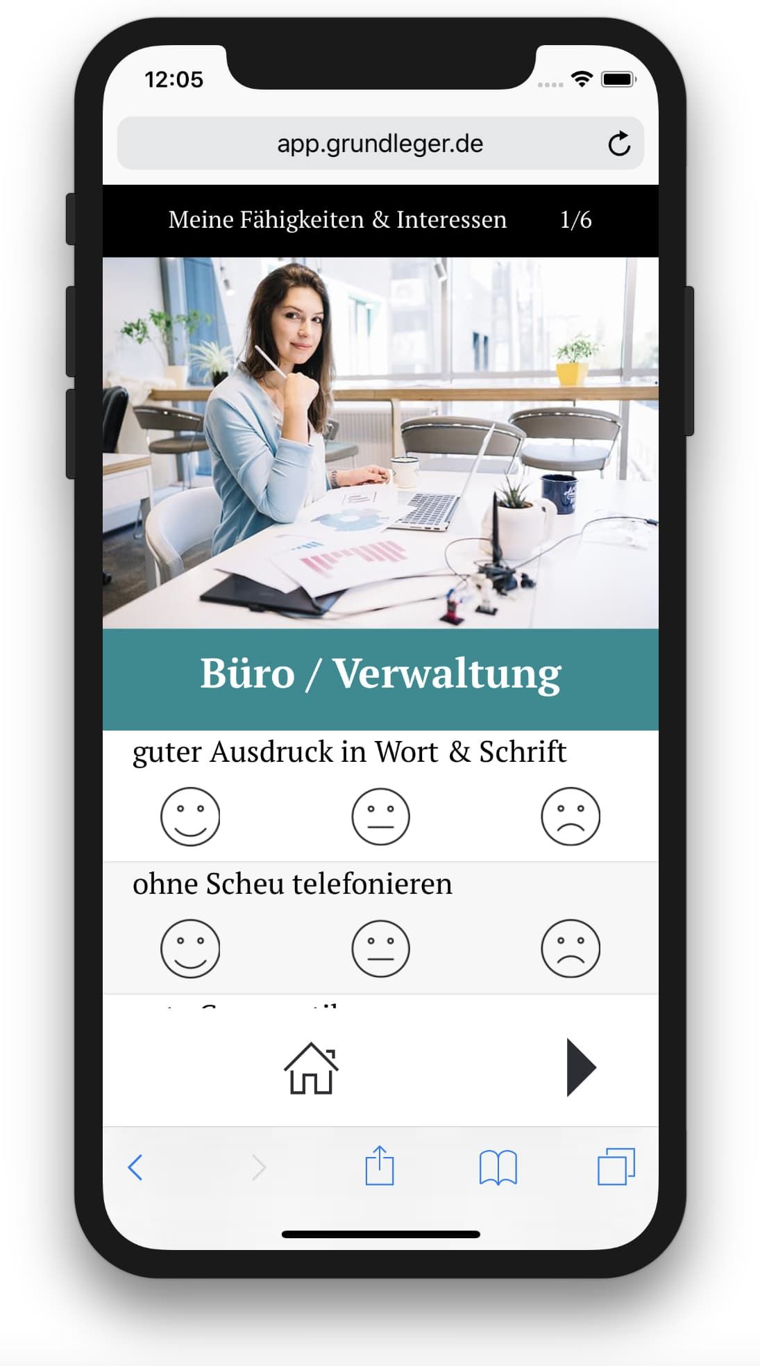 Im Spezialmodul zur Berufsorientierung können unentschlossene SchülerInnen einen Selbstcheck durchlaufen und aus 6 Berufsblöcken ihren Favoriten ermitteln. Als Ergebnis werden passende Berufe oder Unternehmensprofile angezeigt.