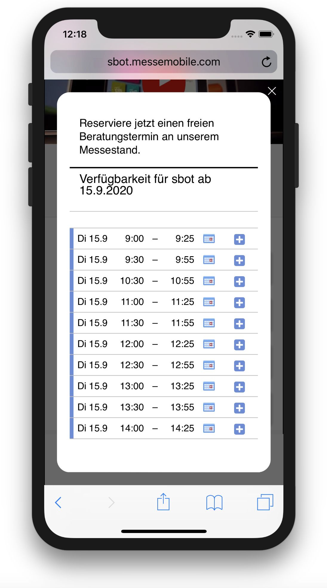 Ihre Messebesuchern können im Vorfeld des Besuchs einen Termin-Slot bei Ihnen buchen.